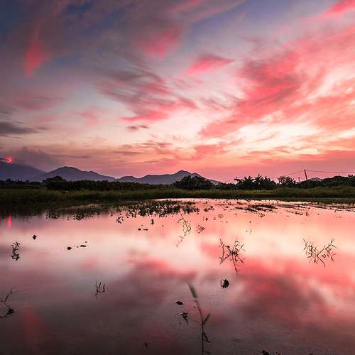 山火。倒影。火燒雲