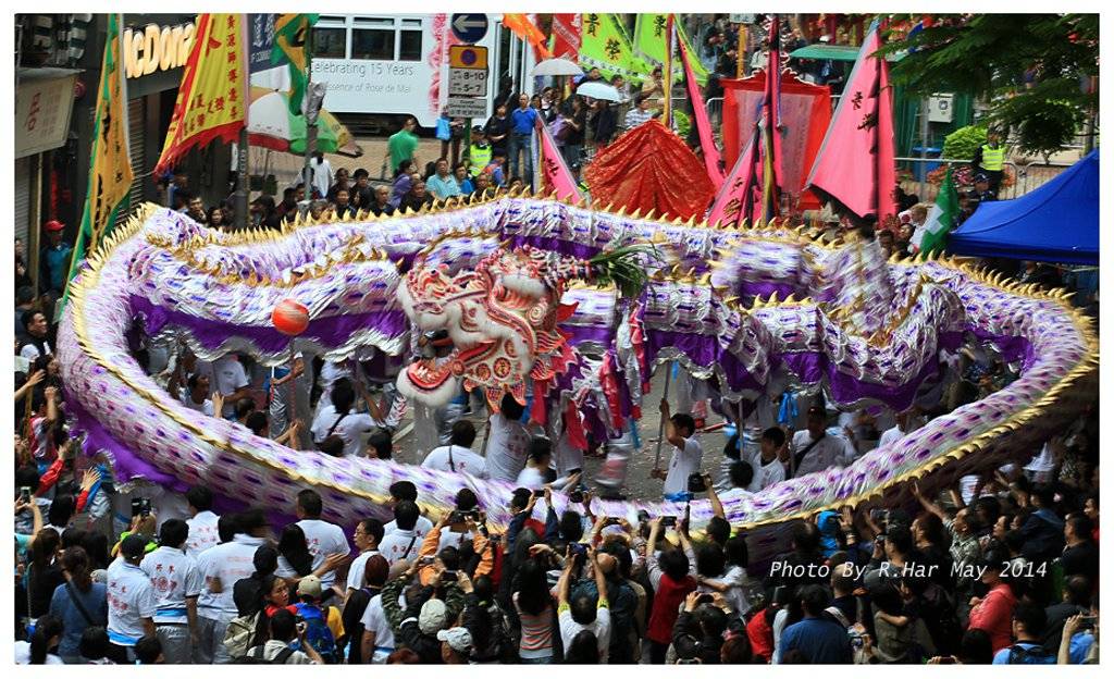譚公誕壓俗表演: 約兩百呎長舞龍, 很震憾、熱鬧而百多人舞動殊不容易…