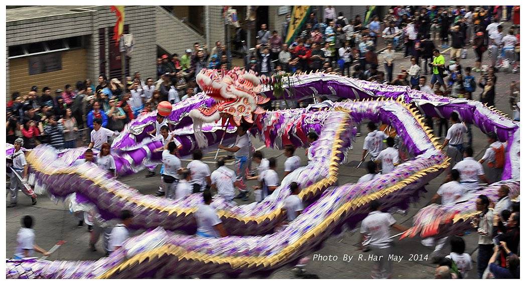 譚公誕壓俗表演: 約兩百呎長舞龍, 很震憾、熱鬧而百多人舞動殊不容易…