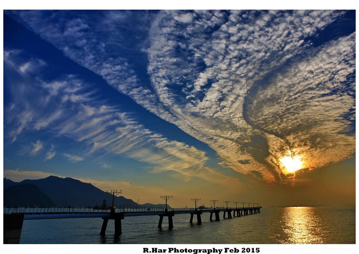 (驚喜特別欣賞到飛機云如絲帶般在天上飛舞)