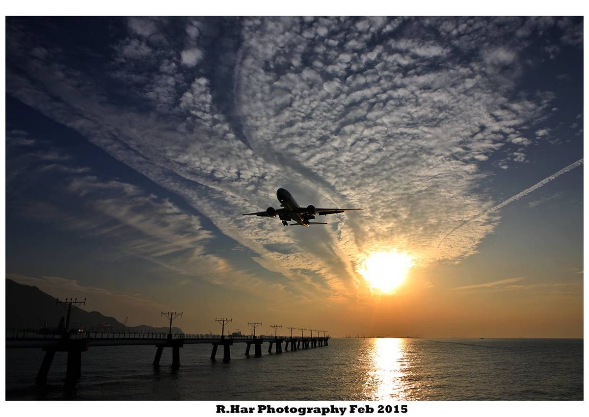點解你會有閒情逸致去看日落、晚霞和看飛機...? 看過這樣相作后你會感受到是一種金錢物質以外的一種享受, 也確是值得你去偷空一個多小時或暫時放下一切?! (驚喜特別欣賞到飛機云如絲帶般在天上飛舞)