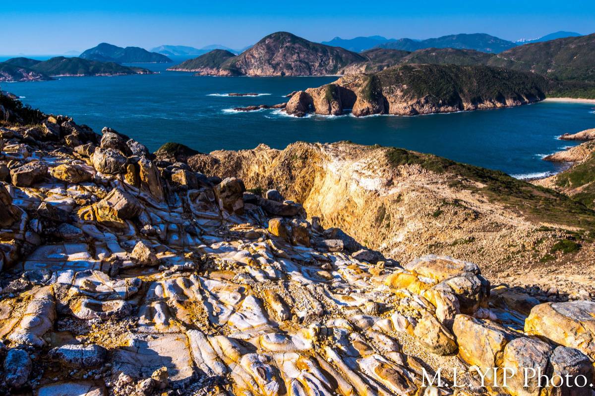 西貢花山下除了有六角柱石崖岸, 還有地貎奇特的白色土坡, 置身其中, 仿似身處異地.