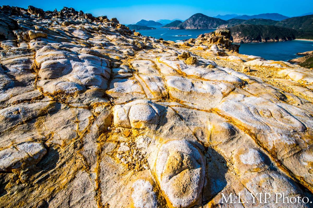 西貢花山下除了有六角柱石崖岸, 還有地貎奇特的白色土坡, 置身其中, 仿似身處異地.