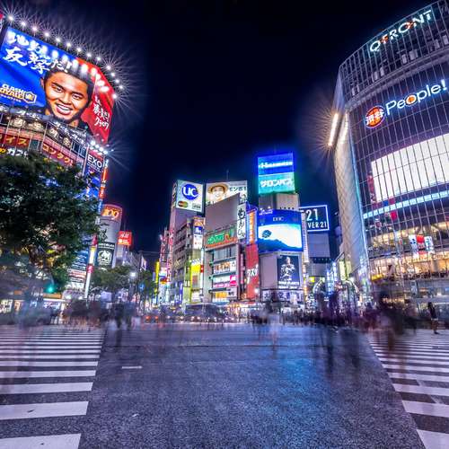 慢快門下的涉谷十字路口