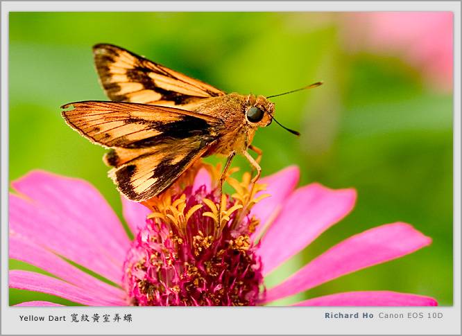 從前遇見的弄蝶都愛高速飛行, 停下來即走...今次這隻寬紋黃室弄可能肚很餓, 好乖咁停下吸花蜜, 任影 ^_^