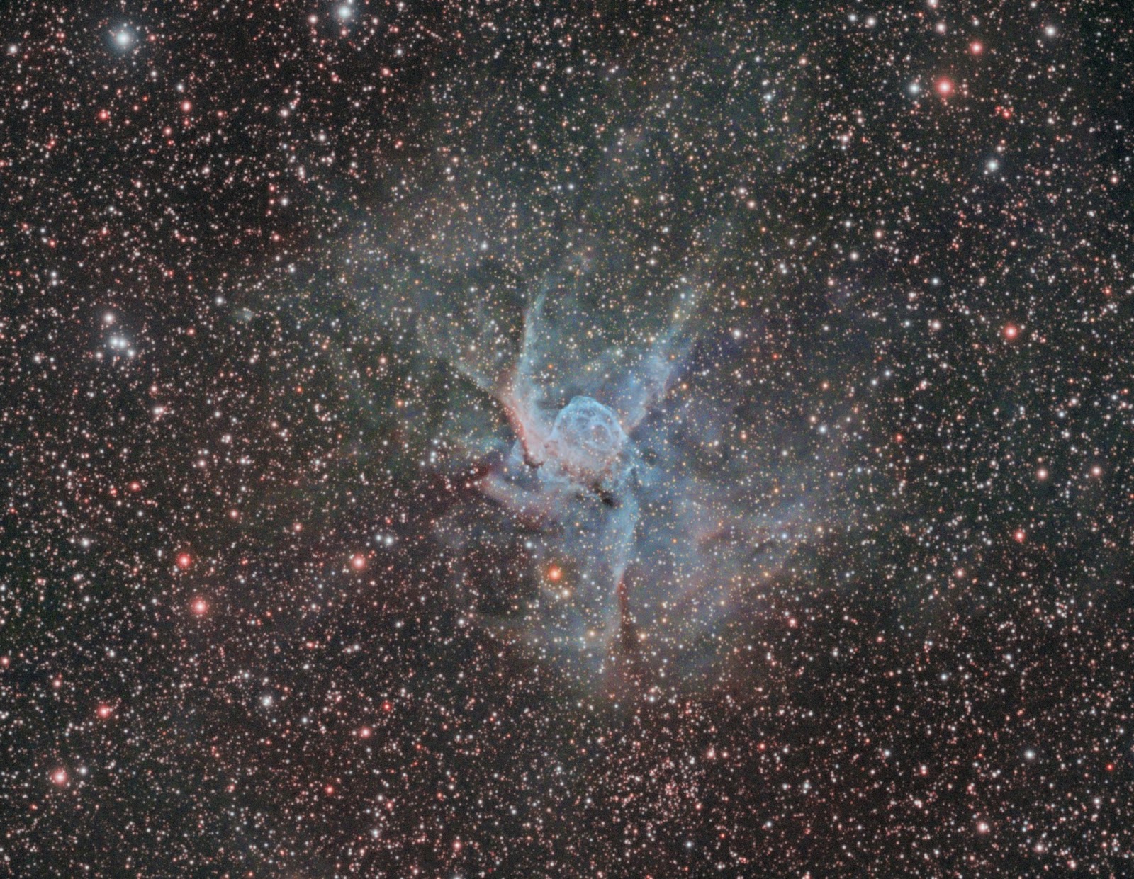 C11/RH200 曝光~32個鐘,焦距就真係唔多夠,細節欠奉。 執相就用~60個鐘,接近 2X exposure,處理效率就比較"弱" 。 年尾要用長焦拍攝,補回細節 :) 詳細拍攝資料: https://astro-noodle.blogspot.hk/2017/08/ngc2359-thors-helmet.html?view=flipcard