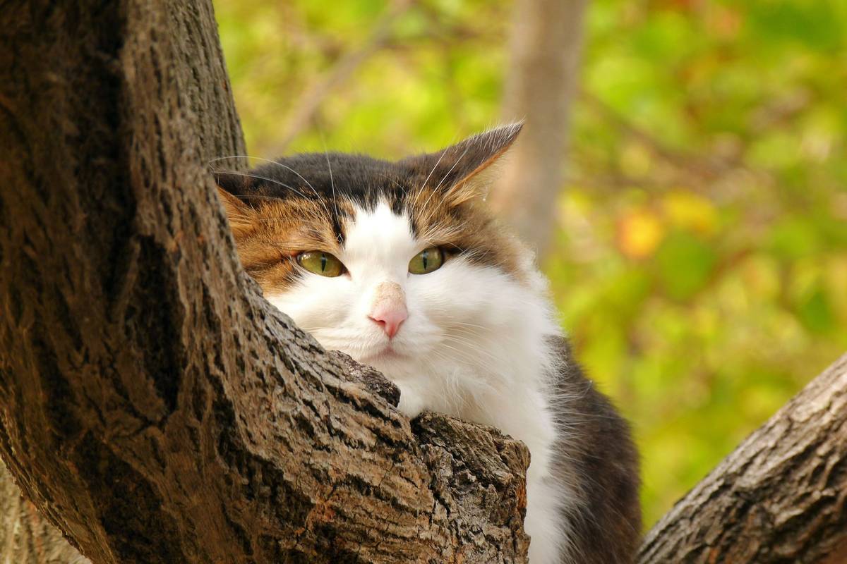 公園 ..貓兒被主人放在樹上..乖巧地等待主人回來