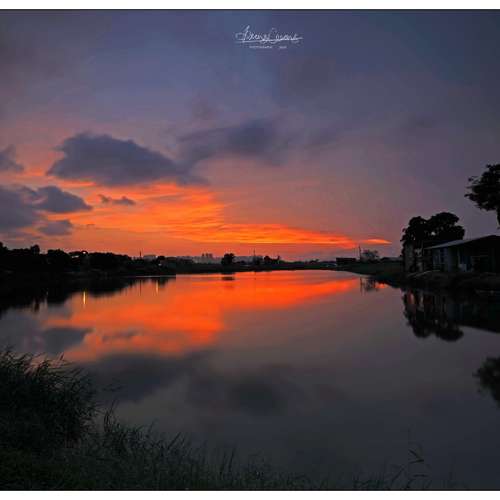 晚霞如畫照野村