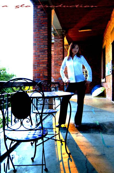 shun 哥話要解釋一下亦是對的. 似乎只有你們現場數人知道佈局…..唉…不能懶惰了.....此相最大的秘密是第一條石柱後有一盞强勁金黃射燈由頂射下, 時间是晚上七點幾, 用較大光圈加大 ISO 多吸現場光, 背景天色便發白, 椅子光效便奇特. model 正面身體变得不會暗了. 地面黃金色彩便又長又强…. Model 面部個人喜好不打閃燈 (會变得死板, 白而冇 detail). 現場光加影樓光效千變萬化,, 仍在學習中…….歡迎參予研討, 永不介意, 狠批亦可…..