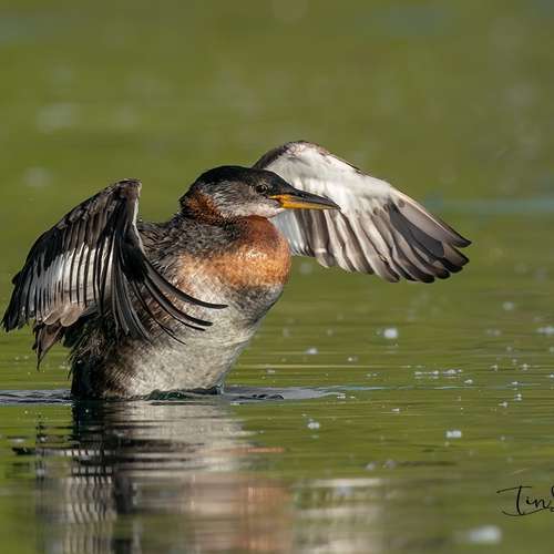 Red neck grebe grooming
