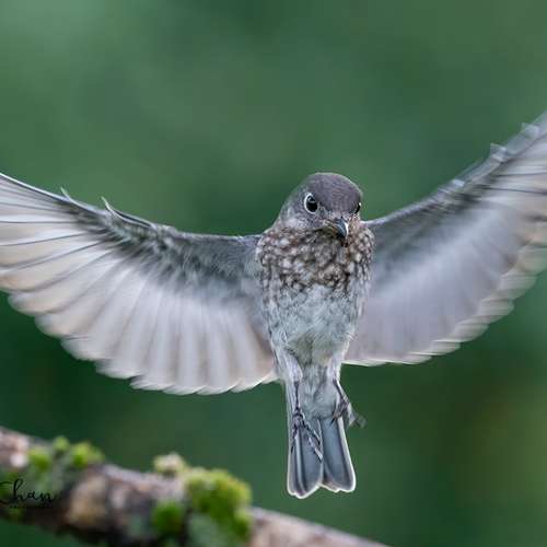 Juvenile blue bird landing