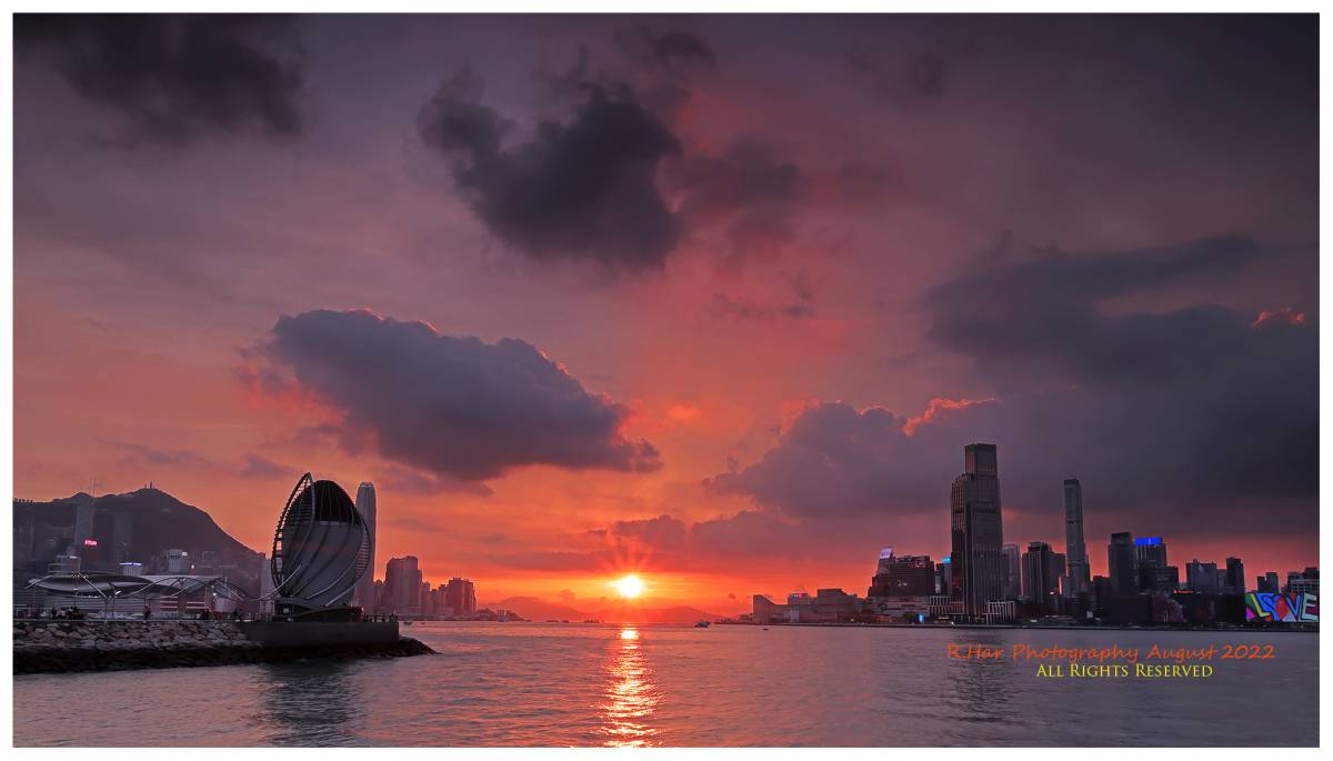這次日落云隙光越來越強,猶如死光發射向天際,很戲劇性發展!