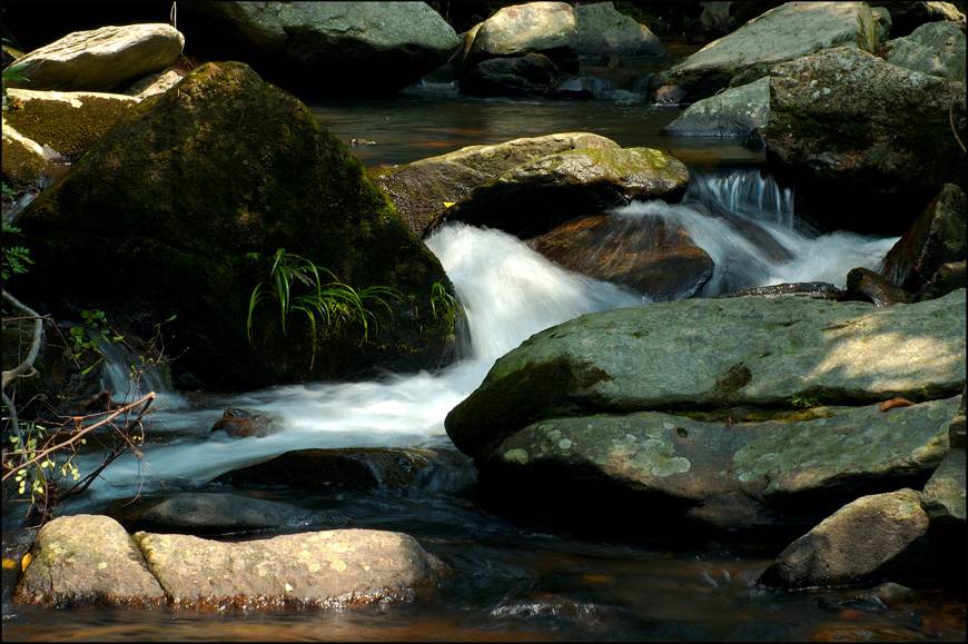 這個暗位太多, 而且顏色單調了一點, 就如我昨天所言, 我會專登執d枯黃的樹葉入鏡, 以作點綴, 或是將地衣、青苔、小草收入鏡, 以免流水照變得太過平淡