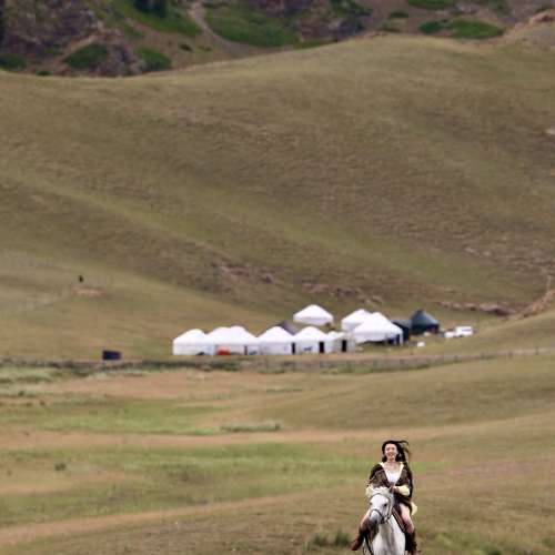 草原,白馬,蒙古包