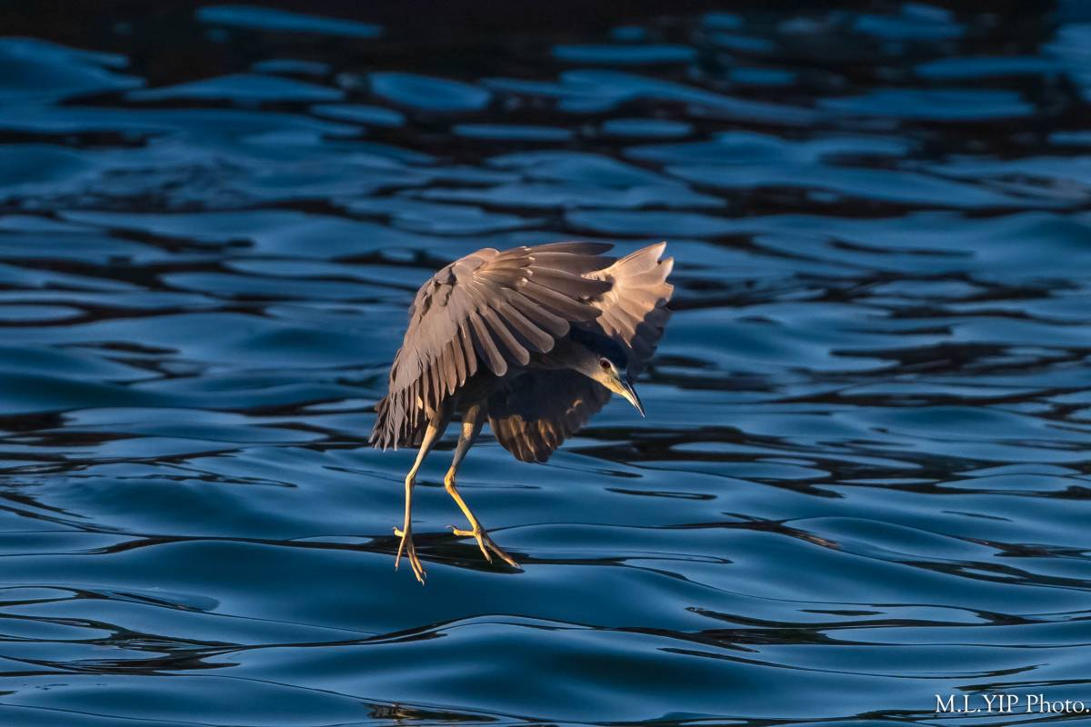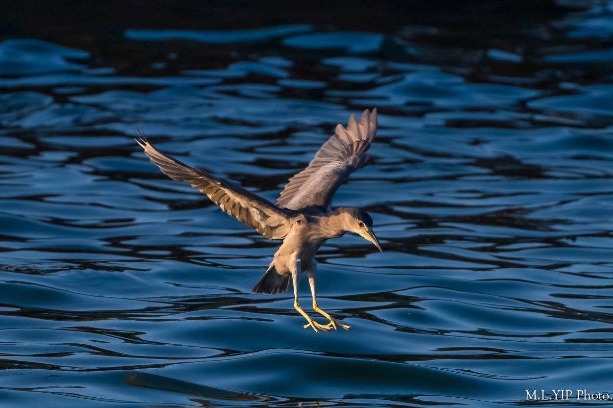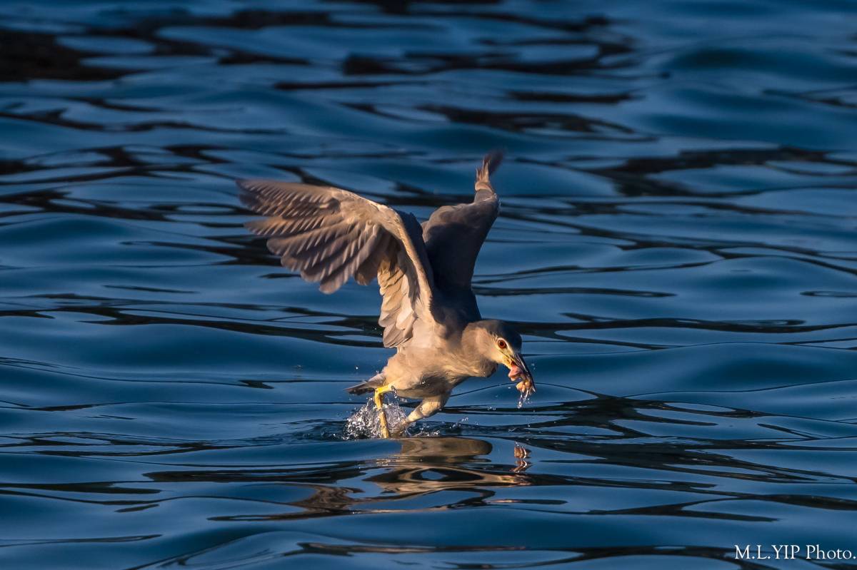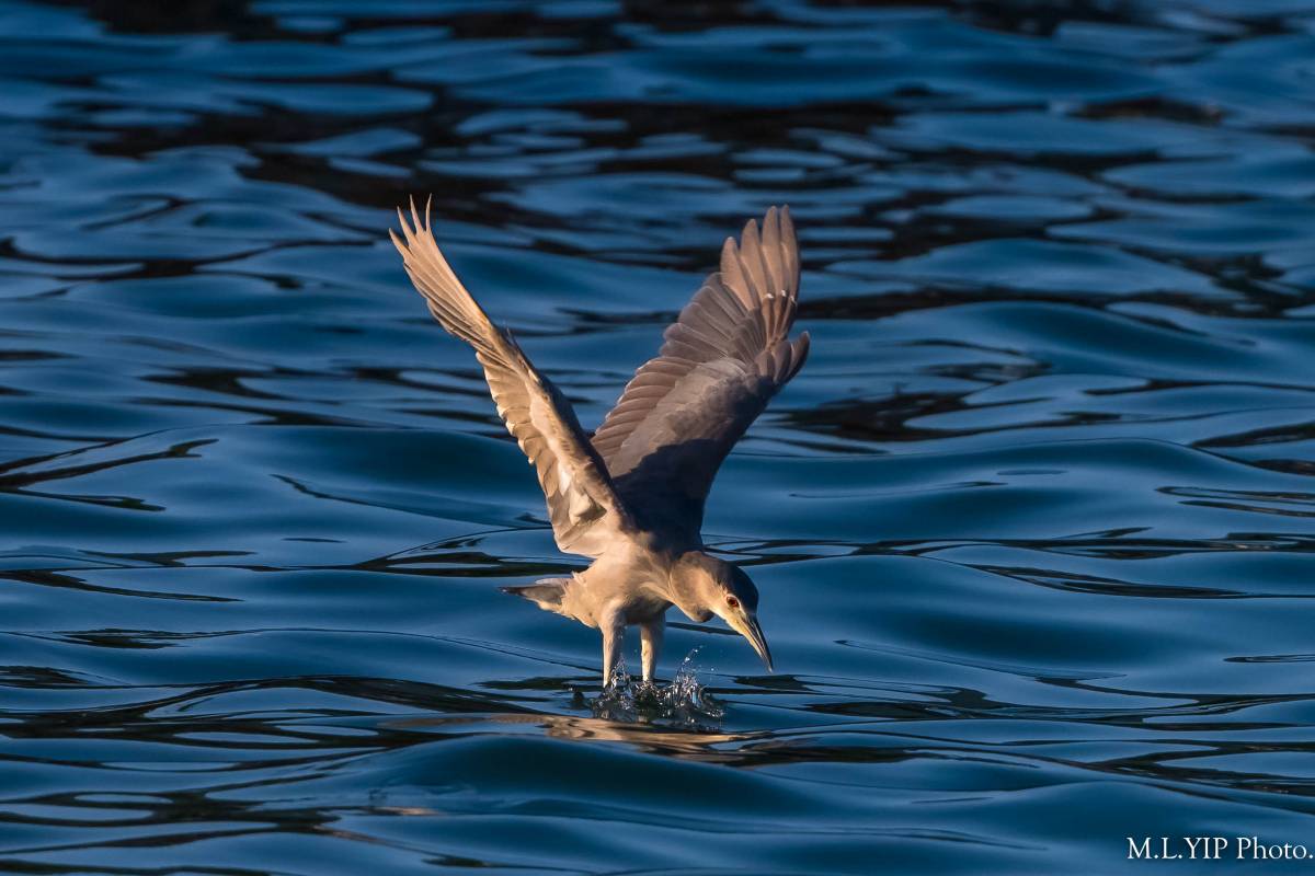 夜鷺定翼海面, 似乎有了目標.