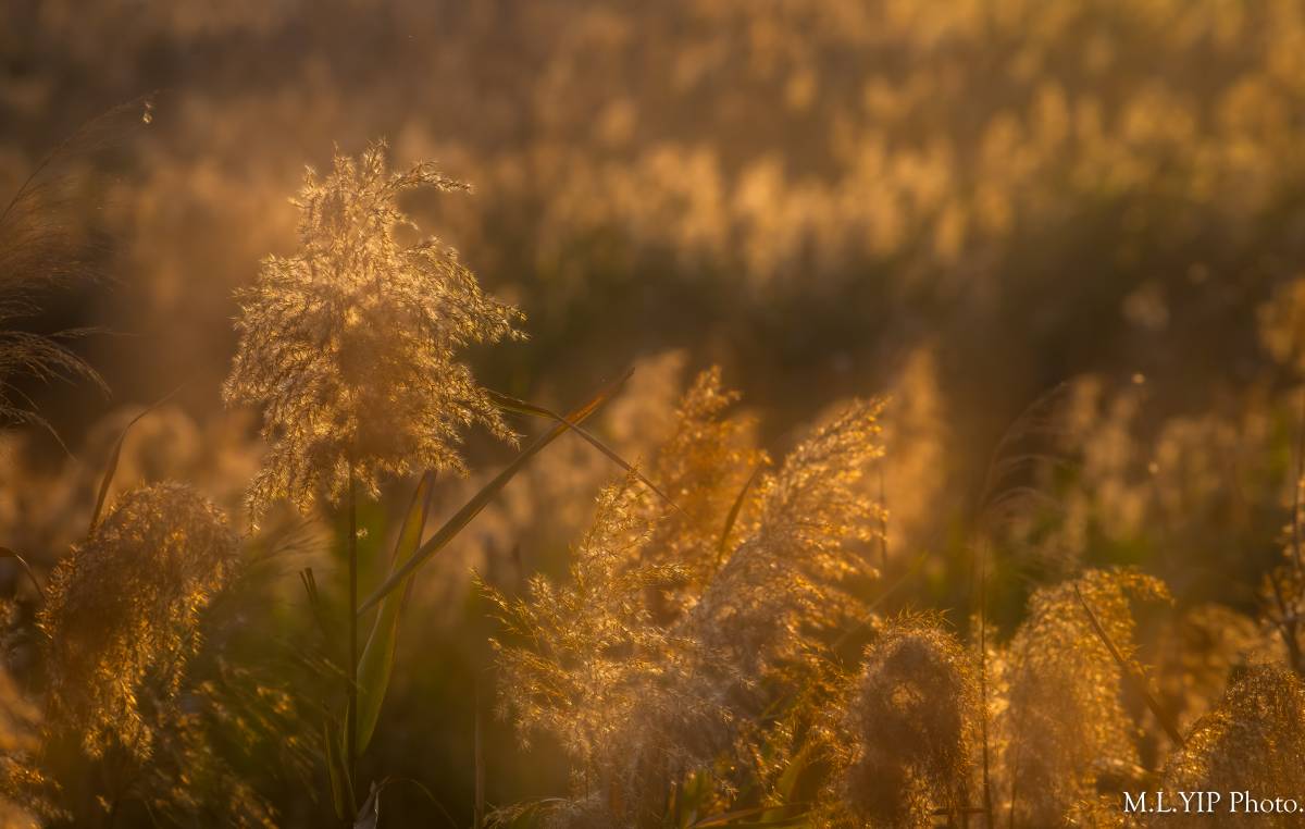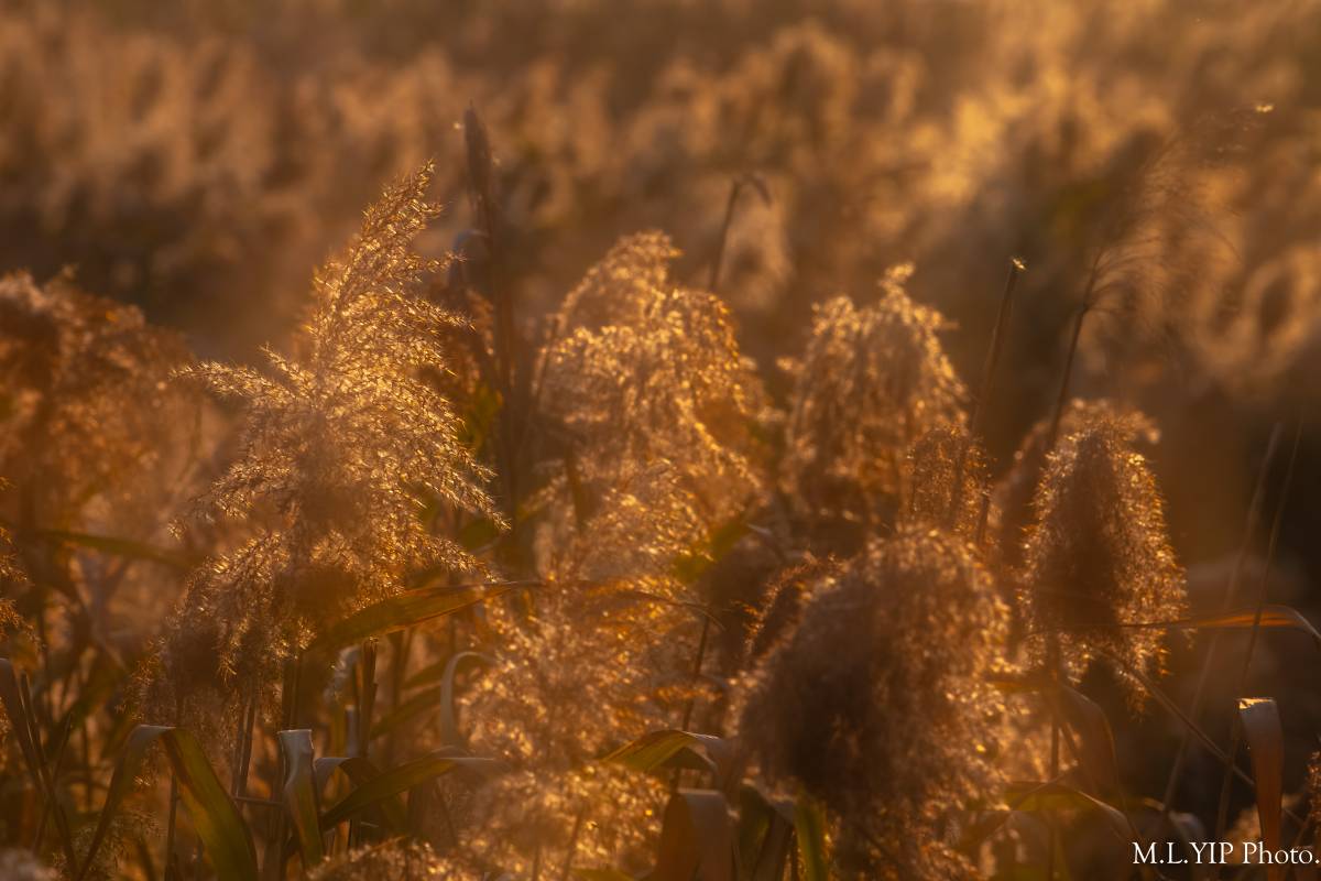 晨光下的蘆葦草.