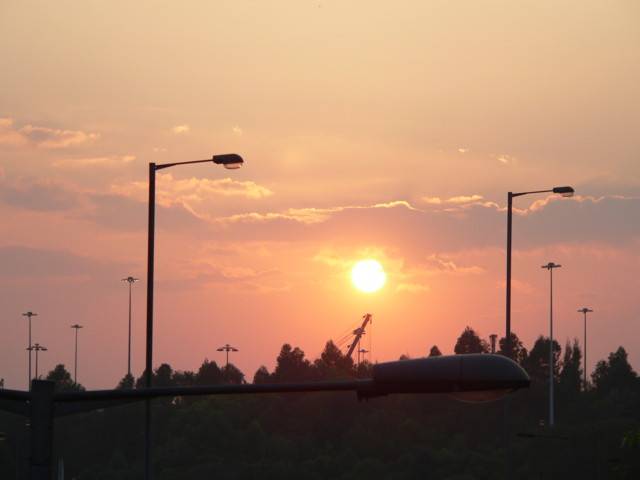 有日行油麻地見到日落,立即飛奔到附近行人天橋上拍攝