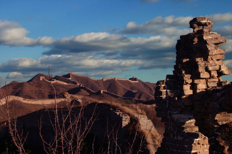 剛從北京回來,北京的朋友帶我攀長城,真是是攀,不是八達嶺那一種,是還沒有修好的長城,保留古長城蒼涼味.他們叫野長城,在北京市郊近河北的農家住一夜,第一天攀師馬台長城,很大霧,第二天,走十二公里,從金山嶺到北沽口,天氣很好,不過行程很險要,要在四,五公尺的城上,攀上攀下,跟攀岩沒有什麼分別,只是沒有安全設施,又誤入軍事基地,最後要從三米多高跳下去.....,不過最重要是非常美的風景,而且四野無人(原來長城不一定要好像八達嶺那樣人頭擁擁),拍了很多照片,還在整理中,先上一張.