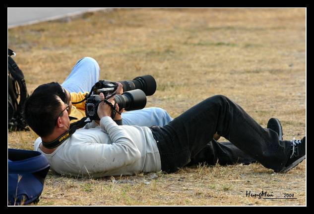 當時小妹用200mm,見到此情景,來不及換鏡頭了,小妹已經很努力跑到老遠去拍了,還是只得個大半身,哈哈!