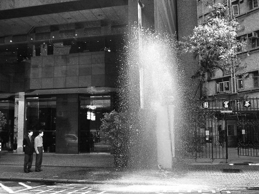 路經旺角, 見爆水喉, 一時手痕拍下