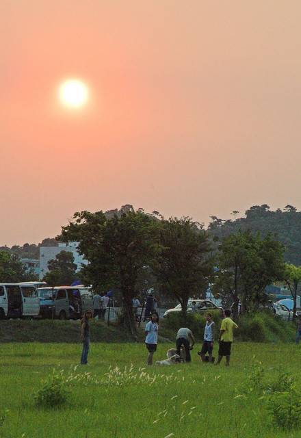 炎熱的南生圍日落下,有人樂也融融