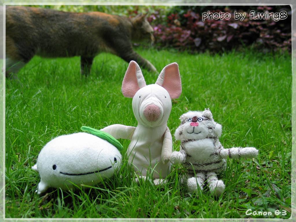 哇....咁恐怖, 後面有怪獸走來走去, 這三個公仔真是要小心...小心了 ! ^0^