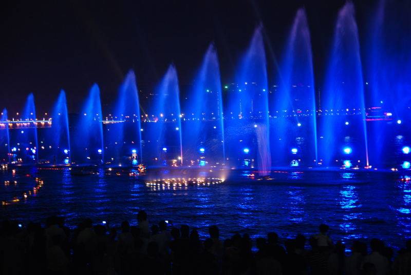 藍色的光束,動聽的旋律。在觀賞音樂噴泉時的收獲。