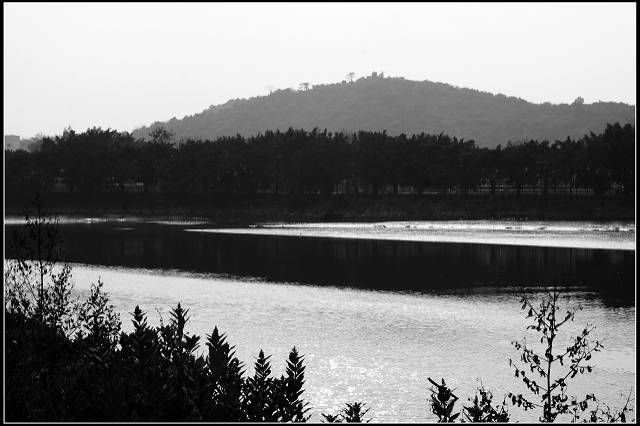黃昏時段到達錦田河,眼前景色平淡,但光暗構成強烈的對比張力。