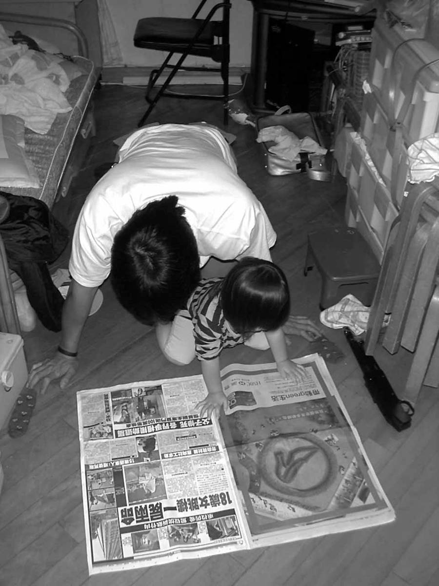 在家中看見细老和他的女兒看報纸