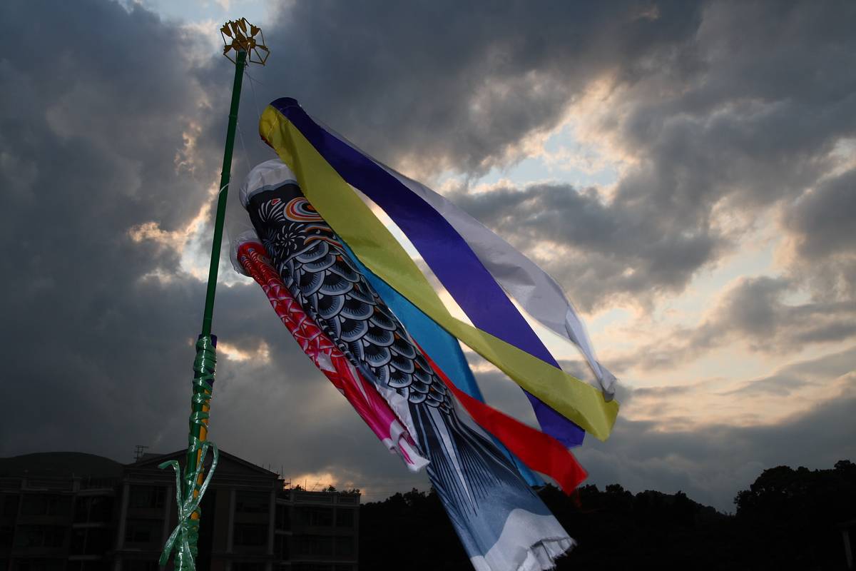 早前有家人考公開試,因此而在窗外掛了鯉魚旗,正當紮好鯉魚旗時,一陣風立刻吹起它,鯉魚旗在空中飛舞,並加上日落的襯托下,令我們一家都希望他可以考到好成績. 因此沒有多想,便拿出相機拍下這一刻!