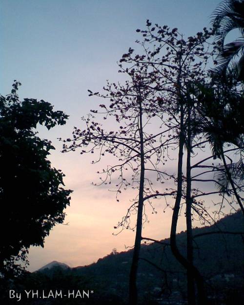 看日落之樹不會自私自利,它會收起自己的葉子,並且長出花兒來迎接日落,讓人看到日落的美.其他樹作為襯托~