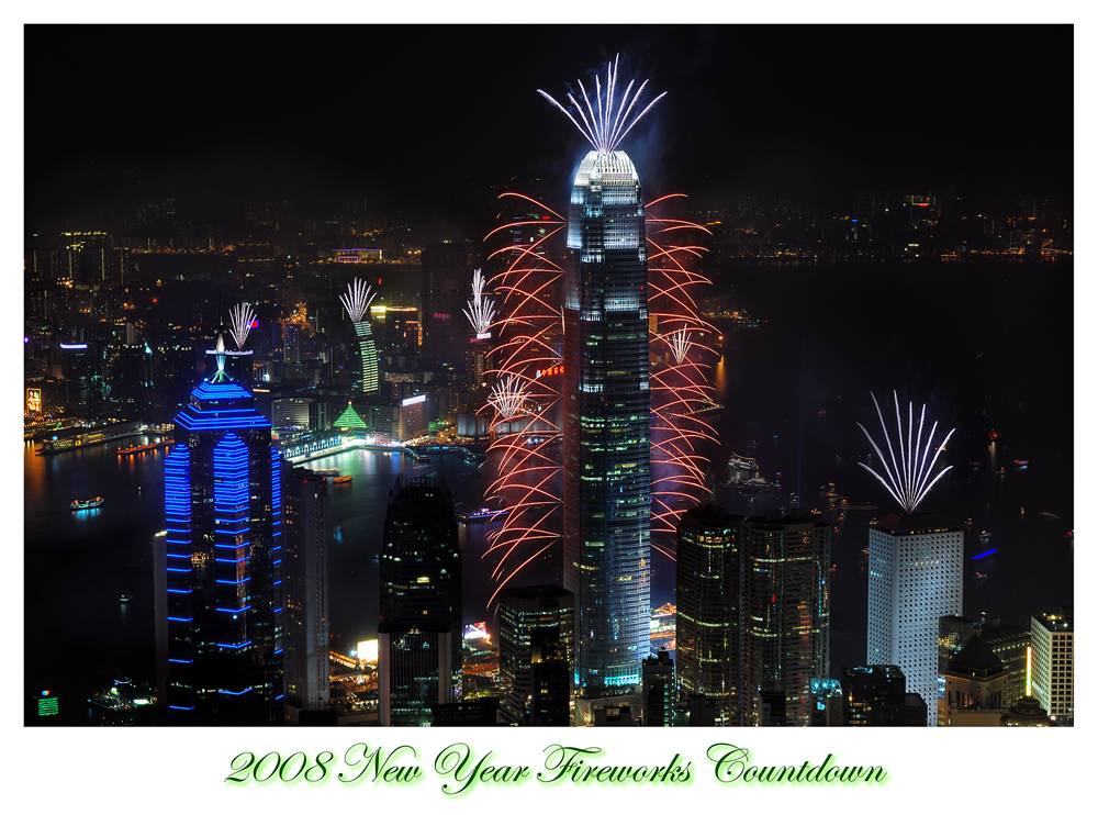 國金煙火迎08,帶動其餘配合表演的大廈,分半鐘的匯演會看到五光十色的煙火。