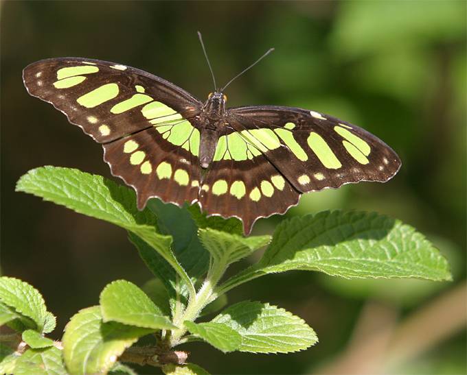 Green butterfly with green leaves