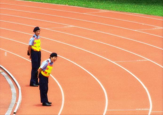 不知何事讓當值的她, 笑得真情流露.