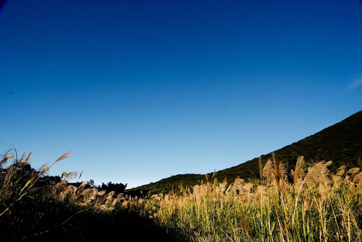 坐在草皮上 看著清澈的藍天 及慵懶的隨風擺動的芒 看見了凝結的寧靜