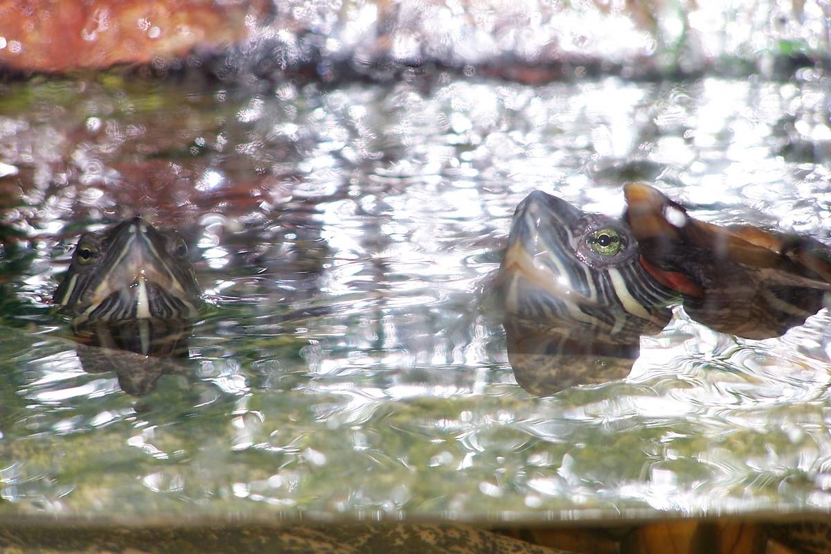 龜龜在小小的魚缸內自由暢泳,無優無慮,比人的生活還好!