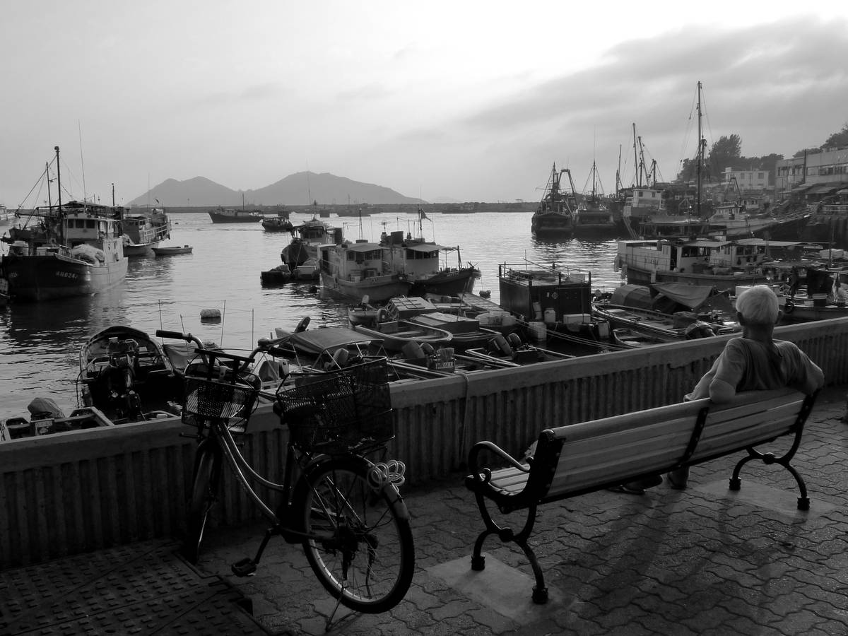 看到這老人好悠閑地看黃昏日落的海景,被佢個神態吸引到