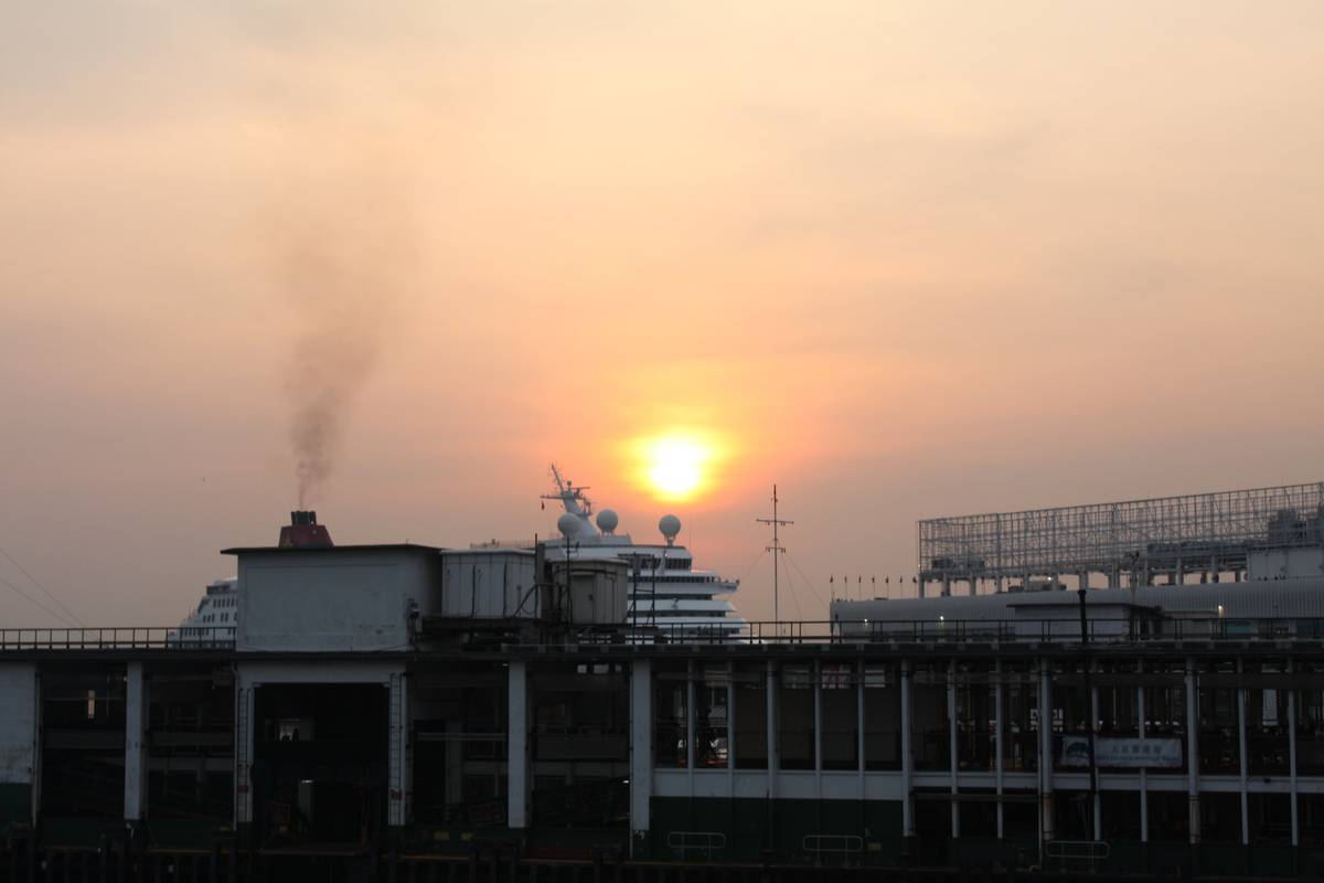日落下的維港與郵輪