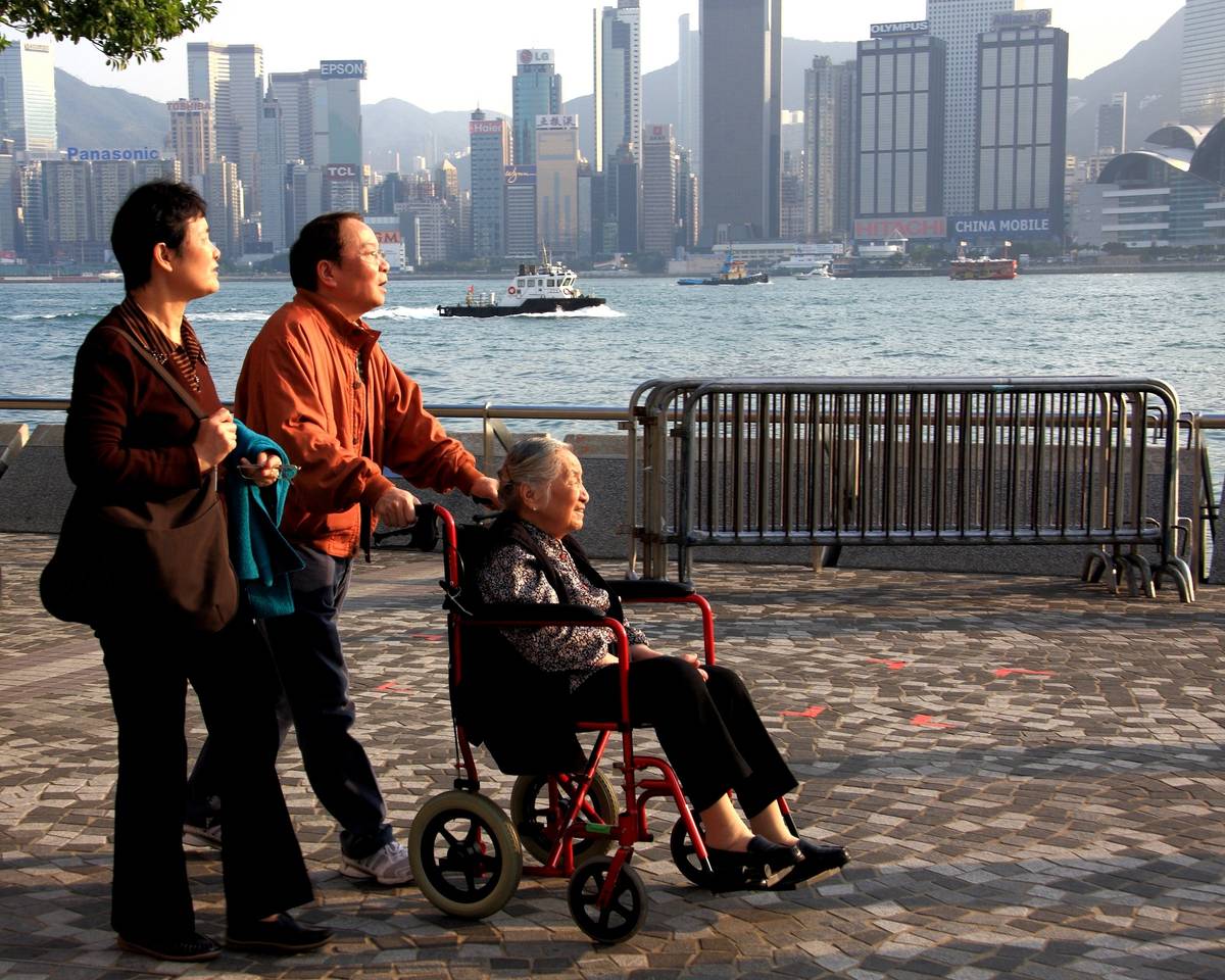 雖然母親行動不便,但是在家人的照顧下依然能夠欣賞維港風光,一家人樂也融融。