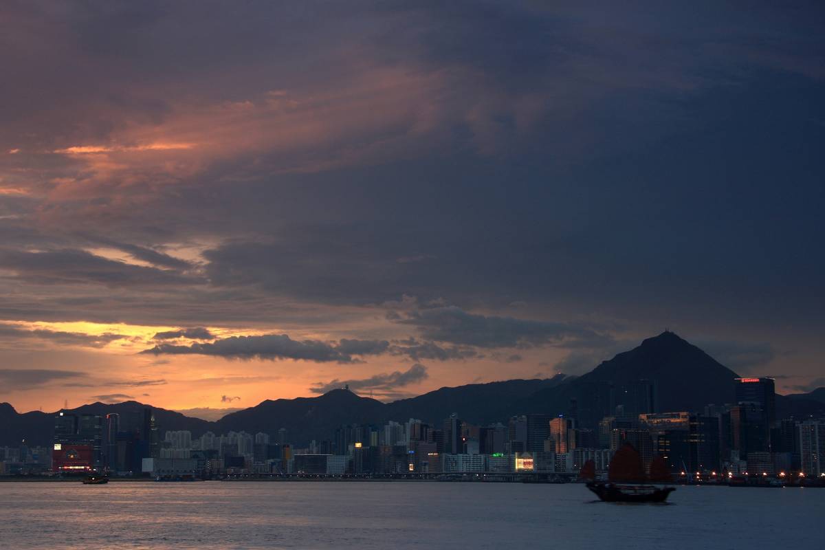 維多利亞海港迷人的晚霞。