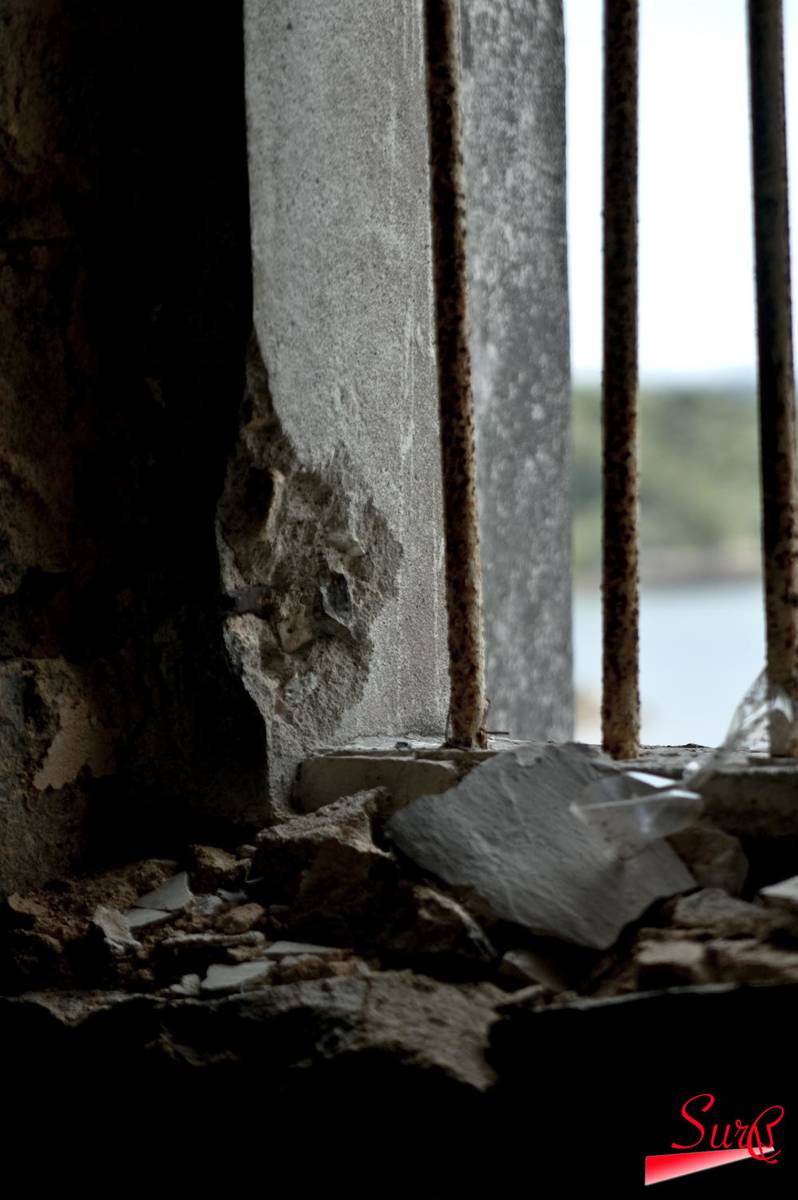 鐵窗內是破爛的石塊,鐵窗外是生生不息的大自然