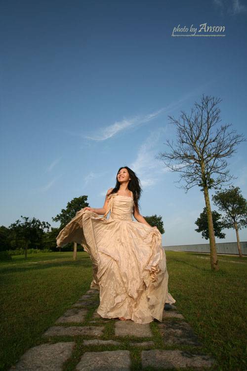 brown dress with blue sky