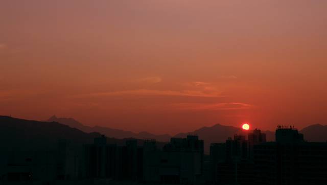 這是在元朗家居的窗口拍攝的落日景色,遠眺屯門青山落日。