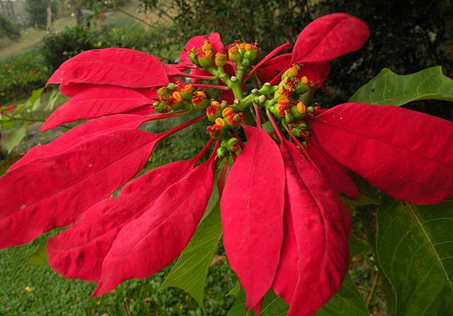 到現在還沒弄清紅色的是花還是葉,而最羞家的是連它的名字也沒搞清楚……喜歡其呈輻射形狀的姿態。
