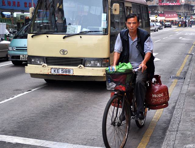 同在馬路上,人力與機動形成一種反差。