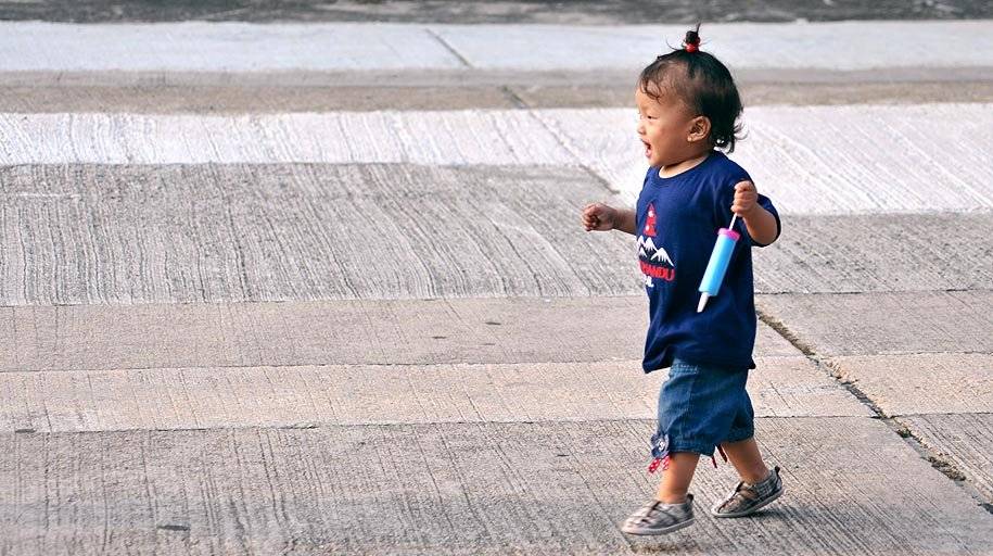 每個小孩剛學步的姿態,一舉手一投足,都是極趣緻的。
