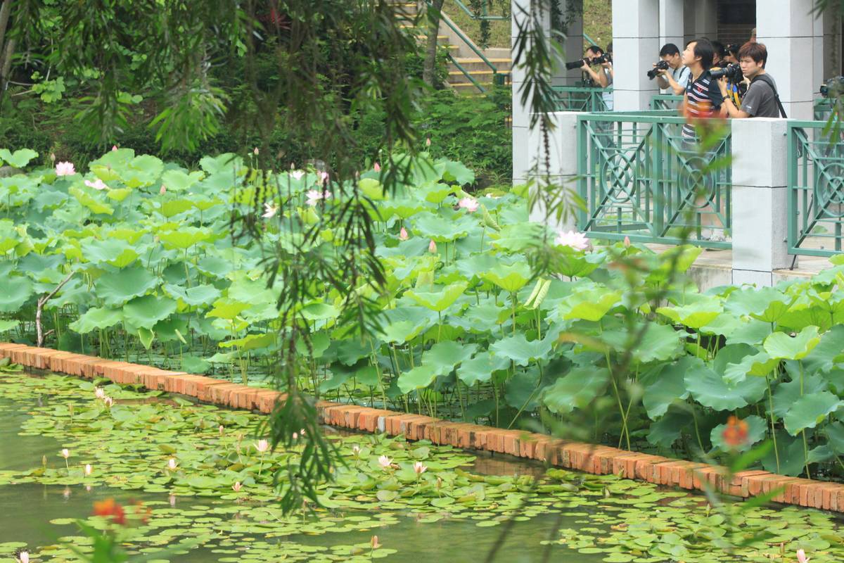 師兄們同賞荷蓮兩花...........