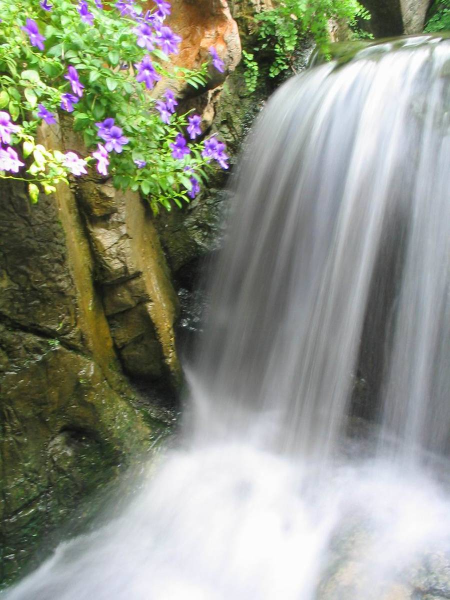 the waterfall is beautiful, but other objects including the flowers are a bit blurred by motion. remember to set a tripod before you this kind of pic : )
