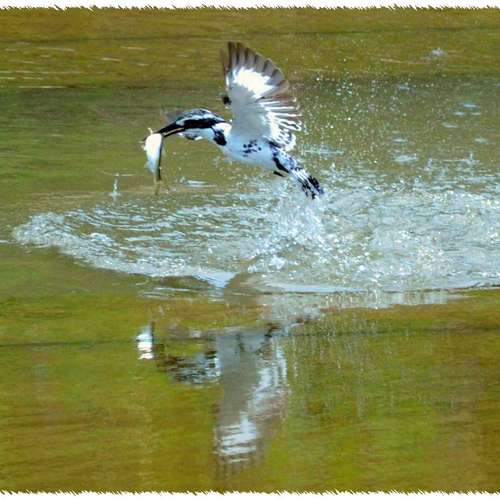 捉了條大魚的斑魚狗.