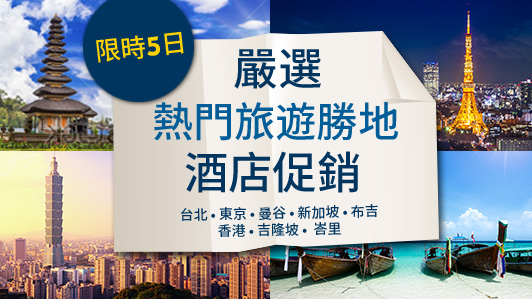 Expedia 再度推出酒店優惠,今次旅遊地點包括台北、東京、曼谷、新加坡、布吉、香港、吉隆坡和峇里,最高會有 5 折,只限 8月16日前預訂,部份酒店入住日期要在 9月30日前。今次優惠,付款時可以照使用 9 折優惠碼再減,和每消費 HK$10 可儲 2 里亞洲萬里通里數。